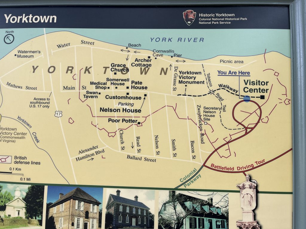 On Thursday, we got off to a slow start and did not head into town until after lunch. It was another hot day, so we decided to tour the Revolutionary War museum as it was largely indoors and air-conditioned. There is a free tram that will pick you up in town (very close to where we docked the dinghy) and take you to the museums and displays around Yorktown. We did a full circle on the tram to get a feel for the lay of the land before getting off at the Revolutionary War Museum. The museum was really quite educational and had many excellent exhibits. We both learned some new things while there. Learning about the revolution also makes us think more about the present state of things in this country. This was a very well-done museum with many quality indoor and outdoor exhibits, worth the trip for sure.