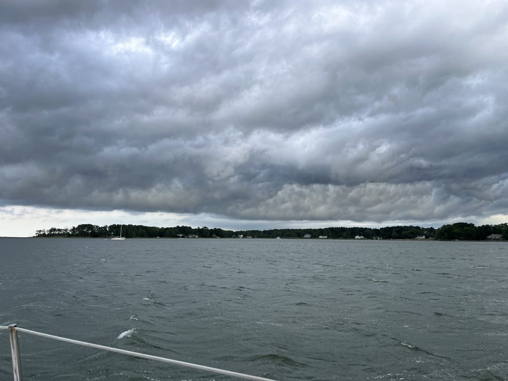 We arrived at Urbanna and set the anchor around 2:30 pm. The winds were strong with possible thunder storms so we stayed aboard for the day in case the anchor did not hold. The anchorage was small, and if we slipped back just a hundred feet or so, we would be on top of other boats in the anchorage. Always better to be safe, and we were not in a rush.