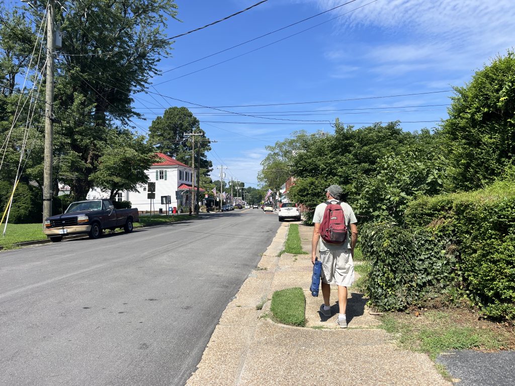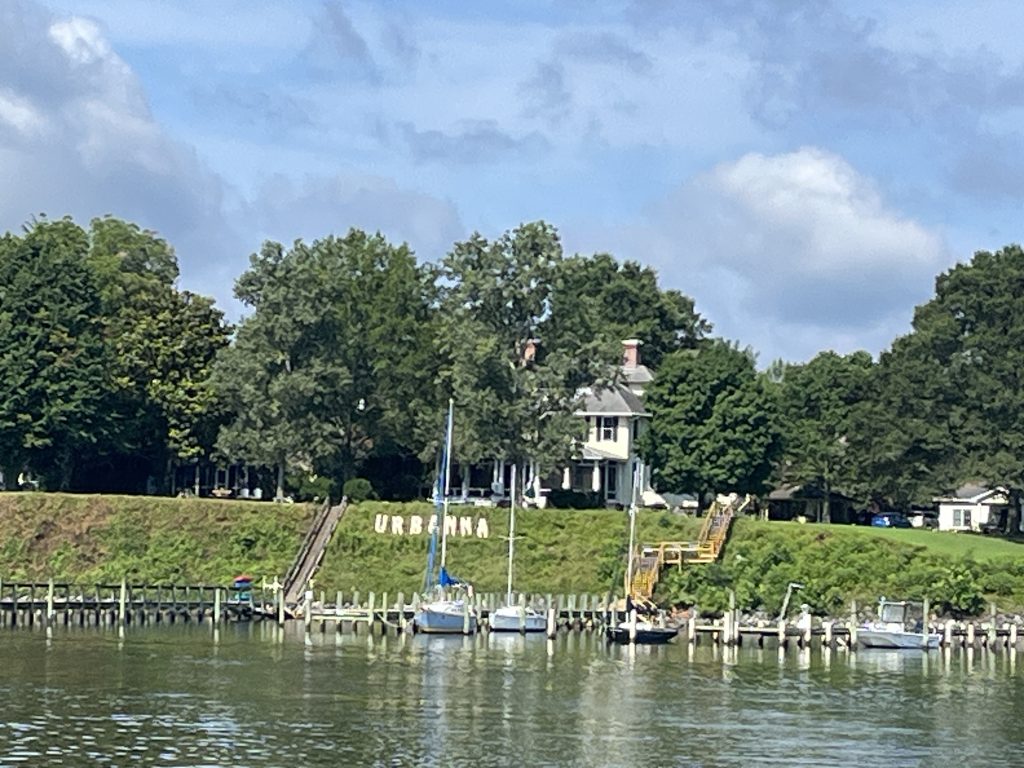 On Friday, the winds were lighter, and we felt the anchor was well set, so we headed into town for groceries, which was really why we stopped here. The grocery store was less than a mile from the dock, so an easy walk although it was another hot day. With light winds. This made the walk a little uncomfortable. Urbana is a nice little town, and everyone we met were very friendly. There is a tram that runs through the town, but we never saw it, so guessing it may only run on weekends. Urbana has many older homes and buildings here, which made the walk interesting. The area we walked had many restaurants, so I’m guessing it’s a popular weekend getaway for the nearby land dwellers. We got back to the boat before the afternoon heat set in.