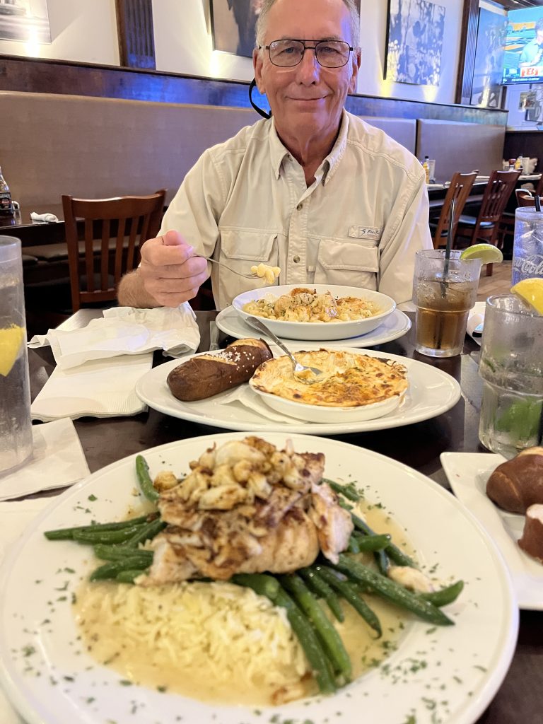 Most of the week was spent visiting John and hiding from the heat. John had business out of town for a few days, so we could borrow his truck to go out for a nice dinner as it was our “Birthaversary” This was both our birthdays and anniversary combined. We were able to dodge the afternoon thunderstorms and had a nice seafood dinner in downtown Easton.
